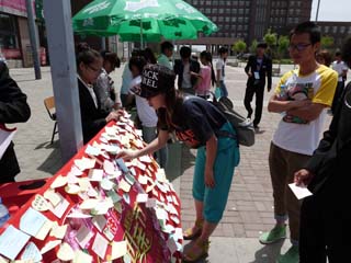 同學們用自己的真心感恩母親,用自己手中的筆寫下對母親最真摯的祝福。在本次活動的抽獎環(huán)節(jié),很多同學們從幸運箱中抽到了比禮物更讓人暖心的祝福母親的話語。受活動現(xiàn)場的影響,同學們紛紛撥打母親的電話,對母親說出心里話。此次活動同學們以多種形式對母親說出自己的心里話表達對她們的感謝和祝福。