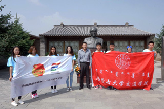 參加“三下鄉(xiāng)”社會實(shí)踐活動的學(xué)院大學(xué)生志愿者在烏蘭夫故居前合影