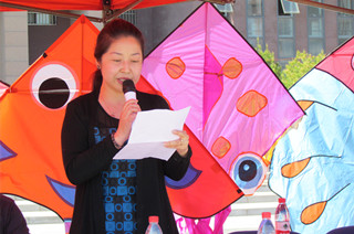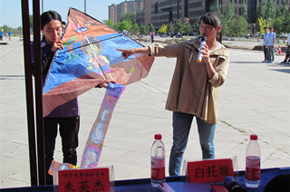 白托婭為放飛儀式致辭,她指出,本次手繪風箏大賽是我們認真落實校園文化建設的一項重要舉措,通過活動傳承和弘揚了民族文化,豐富了廣大師生課余文化生 活,有效培養(yǎng)了同學們的創(chuàng)作創(chuàng)新意識、動手實踐能力和團隊協(xié)作精神,展示出我院師生自信樂觀、文明健康、和諧奮進的良好精神風貌,希望學院廣大師生能以此 次活動為契機,在學院黨委的正確領導下,凝心聚力、和衷共濟共謀發(fā)展,為學院建設做出新的更大貢獻。