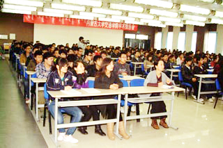 交通運(yùn)輸廳副廳長(zhǎng)馬萬斌、科技處處長(zhǎng)劉鳳林、規(guī)劃處副處長(zhǎng)李喜、辦公室副主任康寧、辦公室主任科長(zhǎng)高曉煒,以及我院領(lǐng)導(dǎo)、中心組成員、各系部及職能部門負(fù)責(zé)人和教師、學(xué)生共300多人在多功能廳聽取了報(bào)告。