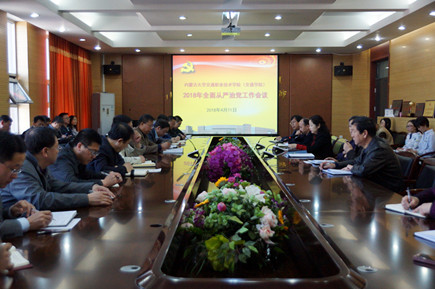 為全面貫徹黨的十九大精神,大力推進(jìn)學(xué)院全面從嚴(yán)治黨向縱深發(fā)展,4月11日上午,學(xué)院黨委召開全面從嚴(yán)治黨工作會(huì)議。學(xué)院領(lǐng)導(dǎo)、副處級(jí)以上干部、直屬黨支部書記、基層黨組織紀(jì)檢委員、專職紀(jì)檢干部參加會(huì)議。