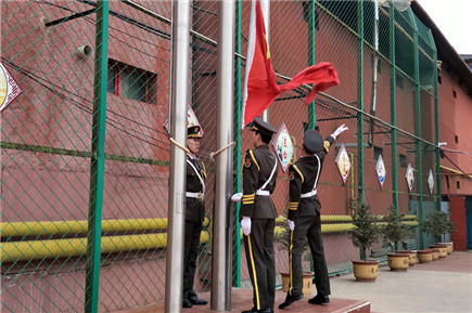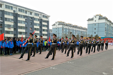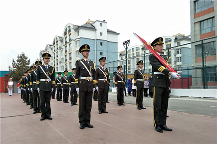 通順街小學大隊輔導員主持升旗儀。學院國旗班在軍樂團吹奏的游行曲中踏著整齊的步伐走過師生隊列走向旗桿處。當軍樂團奏響國歌,鮮艷的五星紅旗冉冉升起時,全體小學生向國旗敬少先隊禮,高唱國歌。國旗班與軍樂團成員動作規(guī)范、整齊劃一的升旗儀式,給通順街小學學生上了一堂生動的愛國主義教育課,讓孩子們真正地了解了國旗的象征意義,近距離地感受到了中華民族偉大的愛國主義精神。