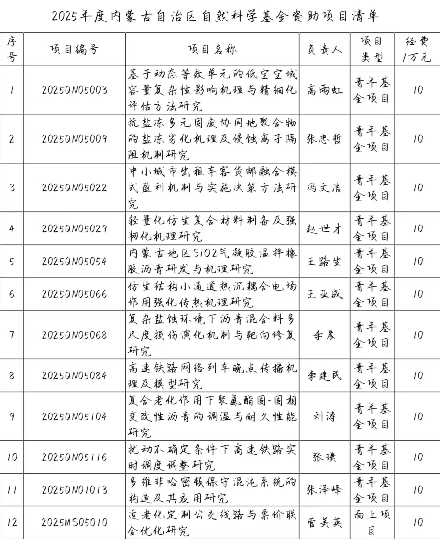 近日,內(nèi)蒙古自治區(qū)科學(xué)技術(shù)廳公布了2025年度內(nèi)蒙古自治區(qū)自然科學(xué)基金項(xiàng)目評審結(jié)果。我院共申報(bào)項(xiàng)目25項(xiàng),最終獲批22項(xiàng),項(xiàng)目獲批率達(dá)88%。其中,青年基金項(xiàng)目11項(xiàng),面上項(xiàng)目9項(xiàng),聯(lián)合基金項(xiàng)目2項(xiàng),總資助金額達(dá)206萬元。在項(xiàng)目數(shù)量和資助額度方面均實(shí)現(xiàn)了新的突破,體現(xiàn)出我院在科學(xué)研究與科技創(chuàng)新能力方面的持續(xù)提升與進(jìn)步。獲批項(xiàng)目清單如下。